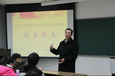 12月9日下午,学院分党校第五十四期学生入党积极分子培训班结业典礼在恕园11-307顺利举行。学院党委陈永强出席典礼并讲话,辅导员和第五十四期党校学员均到场参加,院党委组织员赵亚英老师主持典礼。